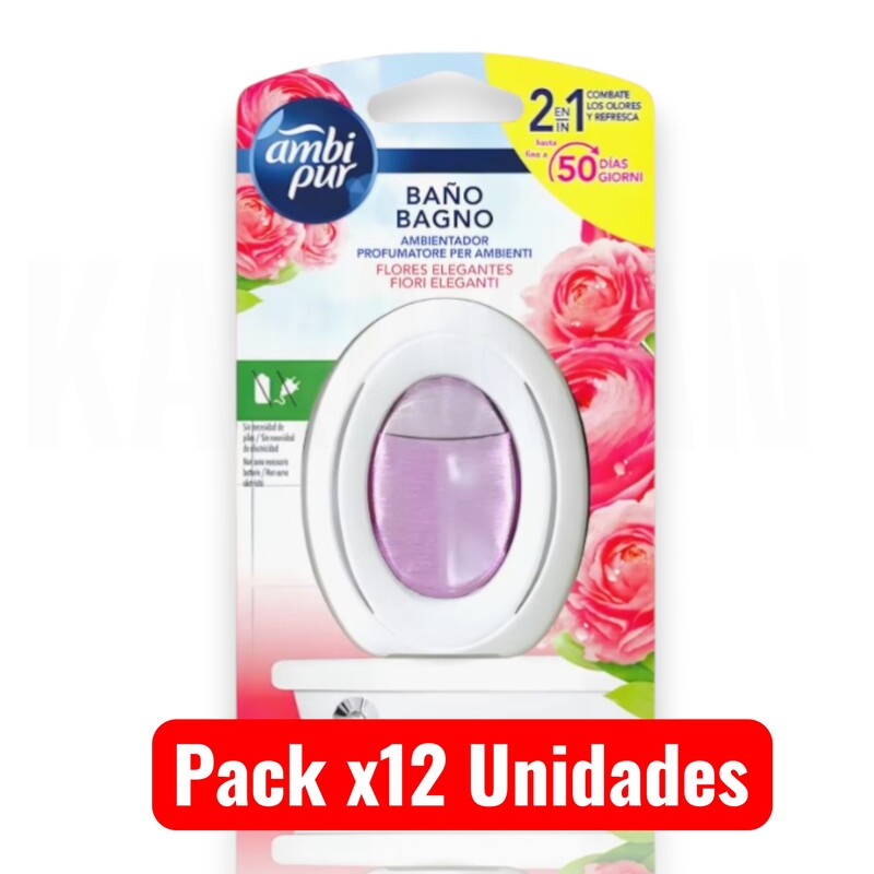 Descubre una experiencia de frescura constante con el Ambi Pur Ambientador para Baño con Fragancia a Flores Elegantes, diseñado específicamente para neutralizar los malos olores y llenar tu baño de una fragancia agradable y sofisticada. Gracias a su innovadora tecnología de difusión, este ambientador proporciona una fragancia continua hasta por 50 días, manteniendo el ambiente fresco sin interrupciones. Este multi pack es ideal para hogares con varios baños o para quienes desean mantener un stock duradero sin preocuparse por reemplazos frecuentes. Su fragancia Flores Elegantes ofrece una mezcla floral suave, fresca y envolvente que transforma tu baño en un espacio más acogedor y limpio. El diseño compacto y elegante se adapta discretamente a cualquier estilo de baño, ocupando muy poco espacio. No necesita electricidad ni pilas, lo que lo convierte en una solución práctica y eficiente. Su instalación es rápida y sencilla: solo debes colocarlo sobre una superficie estable y dejar que actúe. Características Principales: ● Fragancia Continua Hasta 50 Días: Gracias a su fórmula avanzada, ofrece frescura prolongada sin recambios frecuentes. ● Neutraliza Los Malos Olores: No solo enmascara, sino que elimina los olores persistentes con eficacia. ● Fragancia A Flores Elegantes: Aroma floral suave que crea un ambiente limpio y delicado. ● Fácil De Usar Y Sin Electricidad: Sin cables ni pilas, funciona de manera autónoma. ● Formato Multi Pack: Ideal para varios baños o uso continuo sin interrupciones. ● Diseño Compacto Y Discreto: Se integra fácilmente en cualquier estilo de decoración. Dimensiones Del Producto (Por Unidad): Longitud: 10 cm | Ancho: 10 cm | Altura: 10 cm | Peso: 50 g Ambi Pur es sinónimo de innovación y calidad en el cuidado del aire. Con este ambientador para baño, no solo obtienes una solución eficaz contra los malos olores, sino también una fragancia que aporta frescura y bienestar en tu hogar