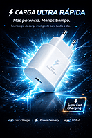 Cargador Rápido USB-C 25W (FSD1641) Blanco – Potencia Y Eficiencia Para Todos Tus Dispositivos Descripción Del Producto: El Cargador Rápido USB-C 25W (FSD1641) en color blanco está diseñado para ofrecer una carga ultra eficiente, segura y rápida para una amplia variedad de dispositivos compatibles con tecnología de carga rápida (Fast Charging). Ideal para smartphones, tablets y otros equipos con entrada USB tipo C, este cargador combina un diseño compacto con un rendimiento de alto nivel, siendo el aliado perfecto tanto para el hogar, la oficina o los viajes. Diseño Compacto Y Portátil: Su estructura ergonómica y ligera lo convierte en un accesorio ideal para llevar a todas partes. Con dimensiones de 10 cm x 7 cm x 4 cm y un peso aproximado de 55 gramos, se adapta fácilmente a bolsos, mochilas o estuches de viaje sin ocupar espacio innecesario. Carga Rápida Y Segura: Gracias a su potencia de salida de 25 vatios, este cargador USB-C permite una recarga mucho más rápida que los cargadores convencionales. Está equipado con tecnologías avanzadas de protección contra sobrecargas, cortocircuitos y sobrecalentamiento, asegurando así una experiencia de carga estable y confiable. Compatibilidad Universal: El modelo FSD1641 es compatible con una amplia gama de dispositivos que utilizan entrada USB-C, incluyendo Samsung Galaxy, Xiaomi, Motorola, Google Pixel, tablets, auriculares y más. También es ideal para usuarios de dispositivos que requieren carga rápida tipo Power Delivery (PD) o Quick Charge (QC). Materiales De Alta Calidad: Fabricado con materiales resistentes al calor y de alta durabilidad, su acabado blanco ofrece una apariencia moderna y limpia, ideal para cualquier entorno. Características Principales: Modelo: FSD1641 Tipo de entrada: USB-C Potencia de salida: 25W Color: Blanco Protección inteligente contra sobrevoltaje y sobrecalentamiento Dimensiones: 4 cm 7 cm 10 cm Peso: 55 g