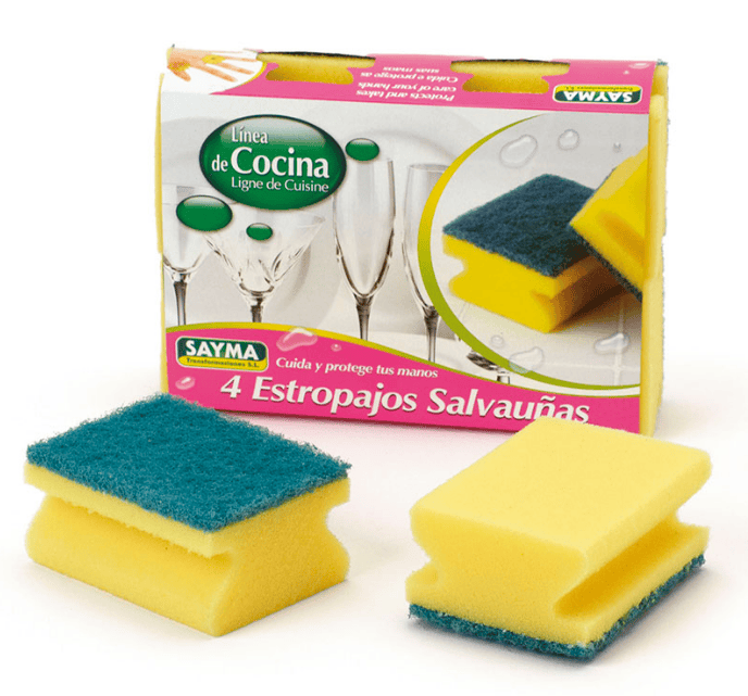 Estropajos Sayma con diseño salvauñas, especialmente indicados para limpiar utensilios de cocina, fregaderos, parrillas o barbacoas. Gracias a su diseño, protegen las uñas y las manos durante la limpieza, ofreciendo al mismo tiempo una acción eficaz contra la suciedad. Cada pack incluye 4 unidades. Unidad de medida: Unidad (UD) o Pack x4, según cómo lo vendas