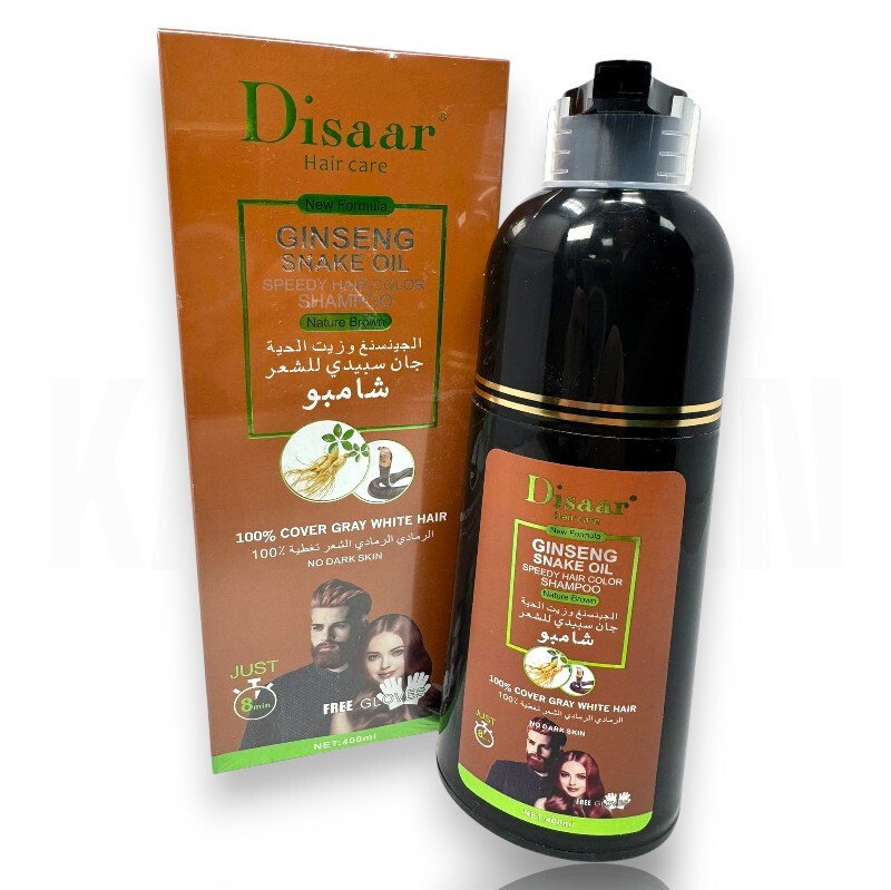 El Disaar Hair Care Champú Colorante Ginseng & Aceite de Serpiente – Natural Brown es una solución rápida y eficaz para cubrir las canas y devolver el color natural al cabello en solo minutos. Su fórmula avanzada tipo champú combina coloración, cuidado capilar y nutrición en un solo paso.