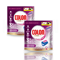 Colon Detergente Cápsulas, 32 Unidades – 3X Poder Quita Manchas, Limpieza Profunda y Frescor Duradero Colon PowerCaps es la solución perfecta para mantener tu ropa limpia y fresca. Este innovador detergente en cápsulas de 32 unidades proporciona una limpieza profunda y elimina las manchas más difíciles, gracias a su fórmula avanzada con 3X Poder Quita Manchas. Asegura una disolución rápida sin dejar residuos, lo que lo convierte en la opción ideal para tu colada diaria, tanto en agua fría como caliente. Con un diseño que reduce el uso de plásticos en su empaque en un 60%, Colon PowerCaps ofrece una opción más amigable con el medio ambiente sin comprometer su efectividad. El aroma fresco y duradero que deja en tu ropa garantizará que disfrutes de prendas limpias con un toque de frescura.