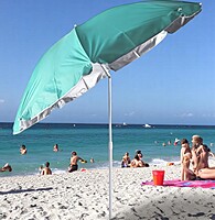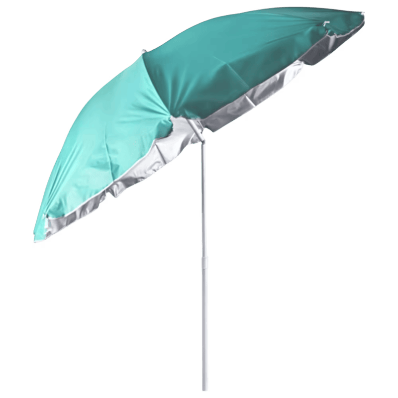 Sombrilla de Playa Color Cian 180 cm – Protección Solar UPF50 y Diseño Resistente Disfruta del sol sin preocupaciones con esta sombrilla de 180 cm en color cian, ideal para playa, jardín o camping. Fabricada en nylon de alta calidad y con protección UPF50, te ofrece sombra segura y duradera dondequiera que estés. Características Principales: ● Diámetro de 180 cm: Crea una zona de sombra amplia para una o dos personas. ● Protección Solar UPF50: Bloquea más del 98% de los rayos UV, ideal para proteger tu piel en días soleados. ● Material Resistente: Fabricada en nylon duradero, ligera y de secado rápido. ● Tubo Metálico Ajustable (22/25 mm): Estructura fuerte y estable, con altura regulable para mayor comodidad. ● Color Cian Vibrante: Diseño moderno que resalta en cualquier entorno. ● Fácil de Transportar y Montar: Se pliega fácilmente y ocupa poco espacio, ideal para llevar en coche o a pie.