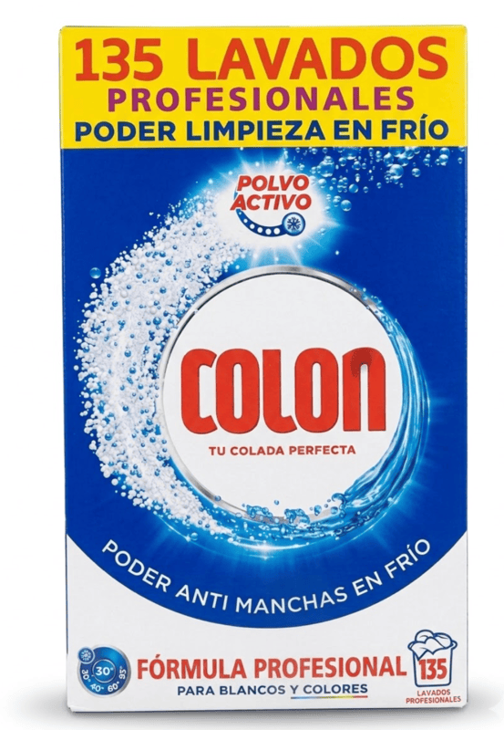 Detalles: ● Colon Polvo Activo está diseñado para eliminar las manchas más difíciles como las de aceite vino o café dejando la ropa impecable y con un agradable aroma fresco Su fórmula avanzada contiene enzimas y activadores de brillo que protegen los tejidos y evitan el desgaste y la decoloración prolongando la vida útil de la ropa. ● Este detergente es fácil de usar simplemente hay que añadir la dosis recomendada en el compartimento correspondiente de la lavadora y seleccionar el ciclo adecuado Además su formato en polvo activo se disuelve rápidamente evitando que queden residuos en la ropa. ● Si buscas un detergente de calidad que te permita ahorrar en cada lavado protegiendo la ropa y eliminando las manchas más difíciles, Colon Polvo Activo es la mejor opción. ● Detergente para la lavadora formato polvo ● Poder quitamanchas incluso en agua fría ● Extra luminosidad en tus prendas blancas y de color ● Ropa sin manchas limpia y con un plus de luminosidad ● Descubre el resto de detergentes y limpialavadoras de Colon