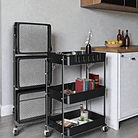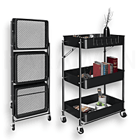 Diseño Plegable Y Práctico El estante cuenta con un sistema plegable que permite abrirlo y cerrarlo en segundos, sin necesidad de herramientas. Cuando no lo estés utilizando, puedes plegarlo y guardarlo detrás de una puerta, bajo una mesa o en un armario, reduciendo el espacio ocupado. Es ideal como carro auxiliar temporal para invitados, carrito organizador de lavandería o estantería extra en pisos pequeños y estudios.