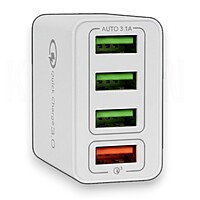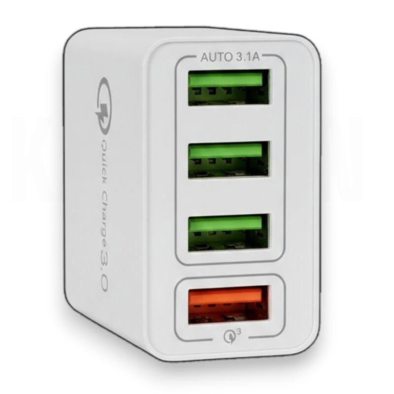Gracias a su capacidad total de 7A y tecnología Quick Charge 3.0, permite optimizar el tiempo de carga, reduciendo esperas y mejorando el rendimiento energético de tus dispositivos electrónicos. Carga rápida Quick Charge 3.0 Incorpora tecnología QC 3.0 (Quick Charge 3.0), que ajusta automáticamente el voltaje y la intensidad según el dispositivo conectado. Esto permite cargar smartphones, tablets y otros equipos compatibles hasta cuatro veces más rápido que un cargador convencional. El sistema de distribución inteligente detecta cada dispositivo y asigna la potencia adecuada para garantizar una carga estable y eficiente. 4 Puertos USB de Alta Potencia Este cargador USB múltiple cuenta con: 4 puertos USB de salida Capacidad total de 7A Carga simultánea de hasta 4 dispositivos Gestión inteligente de energía Es perfecto para cargar teléfonos móviles, tablets, power banks, auriculares inalámbricos, relojes inteligentes y otros dispositivos electrónicos compatibles con USB.