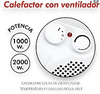2 niveles de potencia (1000W / 2000W): ajusta la intensidad del calor según la necesidad.