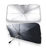Gracias a su diseño tipo paraguas, las sombrillas Brella Shield se despliegan y pliegan en segundos, ocupando muy poco espacio cuando no se utilizan. Su superficie reflectante actúa como barrera térmica, evitando que el salpicadero, volante y asientos se sobrecalienten.