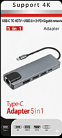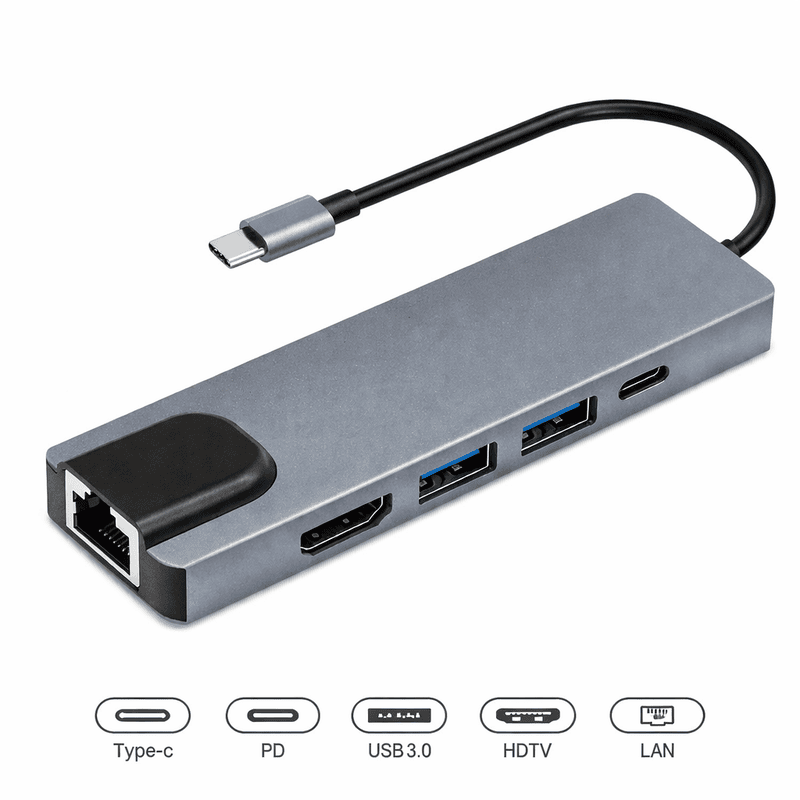 Puertos Disponibles (5 en 1) 1 x Puerto HDTV (HDMI): Permite conectar una pantalla externa o proyector. Soporta resolución 4K a 30Hz (3840 x 2160). 2 x Puertos USB 3.0: Para transferencia de datos a alta velocidad y conexión de periféricos como ratones, teclados o memorias USB. Es compatible con versiones anteriores (USB 2.0 y 1.1). 1 x Puerto USB-C PD (Power Delivery): Este puerto permite cargar tu dispositivo mientras usas el adaptador, conectando el cargador original al hub. 1 x Puerto Ethernet Gigabit (LAN): Entrada para cable de red RJ45 que ofrece una conexión a internet más estable y rápida que el Wi-Fi, con velocidades de 10/100/1000 Mbps.