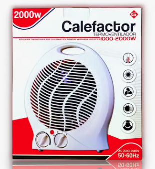 Calefactor Termoventilador Redondo 1000W-2000W – Gerimport | Diseño Compacto con Asa y Control de Temperatura