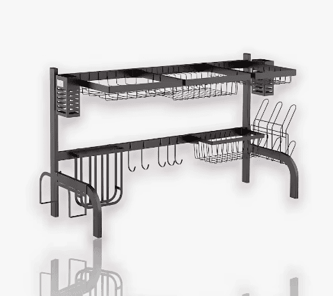Escurridor de platos Karawan fabricado en hierro resistente con acabado en color negro, ideal para mantener el orden en la cocina. Su diseño compacto de 40×30 cm permite ahorrar espacio, adaptándose perfectamente a encimeras pequeñas o medianas. Incluye soporte para platos, vasos y cubiertos, ofreciendo una solución práctica y duradera para el secado diario de la vajilla.