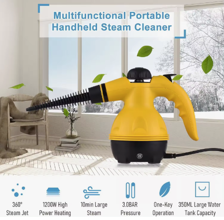 El limpiador a vapor Karawan es una herramienta práctica, potente y compacta para una limpieza profunda sin químicos. Equipado con un motor de hasta 1000W y una presión máxima de 2.9 bares, elimina grasa, suciedad y bacterias en cocinas, baños, ventanas, tapicería y más. Incluye 6 cabezales especializados y 3 complementos adicionales para cubrir distintas superficies, incluso en rincones difíciles. Con un depósito de 500ml, brinda autonomía suficiente para sesiones de limpieza completas sin recarga constante. Características principales: Potencia de 1000W: Vapor constante para desinfección efectiva. Presión de hasta 2.9 bar: Penetra en la suciedad incrustada. Capacidad del tanque: 500 ml para uso prolongado. Radio de acción de más de 12 metros: Mayor movilidad sin cambiar de enchufe. Incluye 6 cabezales y 3 accesorios: Para cristales, juntas, tapicería, rincones, y más. Peso ligero: Menos de 1.9 kg, fácil de maniobrar. Certificación CE: Cumple estándares de calidad y seguridad. Ideal para limpieza ecológica: No requiere detergentes ni químicos agresivos.