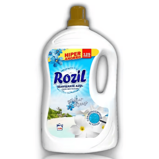 Suavizante Rozil con fórmula concentrada para un frescor intenso y duradero. Proporciona suavidad a los tejidos, facilitando el planchado y cuidando las fibras de la ropa. Deja un agradable aroma que se mantiene por más tiempo, ideal para ropa blanca y de color. Formato ahorro de 125 dosis, perfecto para uso doméstico o profesional.