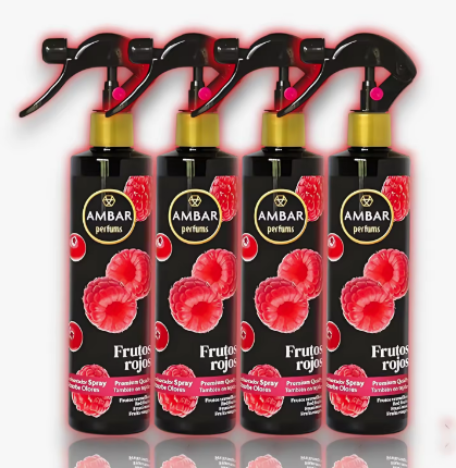 Frescura duradera y eliminación de olores con aroma a frutos rojos El Ambientador en Spray Ámbar Perfums en pack de 4 unidades con aroma a frutos rojos es la solución perfecta para mantener tus espacios frescos y agradables. Su fórmula de calidad premium no solo deja un aroma delicioso, sino que también absorbe los malos olores del ambiente y de los tejidos, proporcionando una atmósfera más limpia y agradable. Ideal para el hogar, la oficina o cualquier espacio que necesite un toque de frescura duradera. Características destacadas: Pack de 4 unidades: Gran valor con múltiples unidades para distribuir en diferentes áreas de tu hogar o trabajo. Aroma a frutos rojos: Una fragancia dulce y refrescante que llena el espacio con una sensación agradable. Absorbe malos olores: Eficaz contra olores persistentes, dejando el ambiente y los tejidos frescos y sin residuos de malos olores. Calidad premium: Fórmula de alta calidad que asegura una larga duración y una acción eficaz. Versátil: Ideal para usar en cualquier habitación, incluidos sofás, cortinas, cojines y más. El Ambientador en Spray Ámbar Perfums es perfecto para quienes buscan un ambiente fresco y una eliminación eficaz de olores con un aroma delicioso.