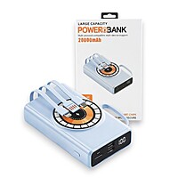 Capacidad Elevada: Cuenta con 20,000mAh, lo que permite cargar un smartphone promedio entre 3 y 5 veces (dependiendo del modelo). Cables Integrados (Built-in wire): Una de sus mayores ventajas es que incluye cables incorporados en el diseño. Según la imagen, parece tener tres conectores diferentes (posiblemente USB-C, Lightning y Micro-USB), lo que elimina la necesidad de llevar cables adicionales. Pantalla Digital: En el lateral frontal se observa un indicador LED numérico que muestra el porcentaje exacto de carga restante. Diseño Moderno: El cuerpo es de color azul claro con un detalle circular en la parte superior que asemeja un panel de carga o un indicador de estado. Especificaciones Técnicas Destacadas Compatibilidad Multi-protocolo: El empaque indica que es compatible con múltiples protocolos de carga rápida, lo que asegura que funcione eficientemente con diversas marcas de teléfonos y tablets. Seguridad Inteligente: Incluye la leyenda "Smart Chips are more secure", lo que sugiere que posee protección interna contra sobrecalentamiento, sobrecarga y cortocircuitos. Soporte Multi-dispositivo: Permite cargar varios equipos de forma simultánea gracias a sus puertos externos y cables integrados Dimensiones: Altura 15 cm Ancho 10 cm Longitud 5 cm