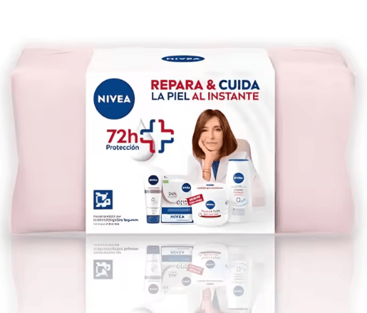 Cuida tu piel de forma intensiva con este pack de NIVEA, ideal para mantenerla hidratada, protegida y reparada. Perfecto para pieles secas o sensibles, y pensado para regalar o llevar en viajes. Contenido del pack: Loción Corporal Repara & Cuida (400 ml) – Hidratación profunda por 72h. Crema Facial NIVEA Soft (75 ml) – Nutre y suaviza rostro, manos y cuerpo. Protección Labial Repair & Beauty (4.8 g) – Alivia e hidrata labios resecos. Gel de Ducha Care & Protect (250 ml) – Limpieza suave y reparadora. Neceser acolchado rosa claro – Práctico y elegante. Marca: NIVEA Indicado para: Piel seca, uso diario, regalo.