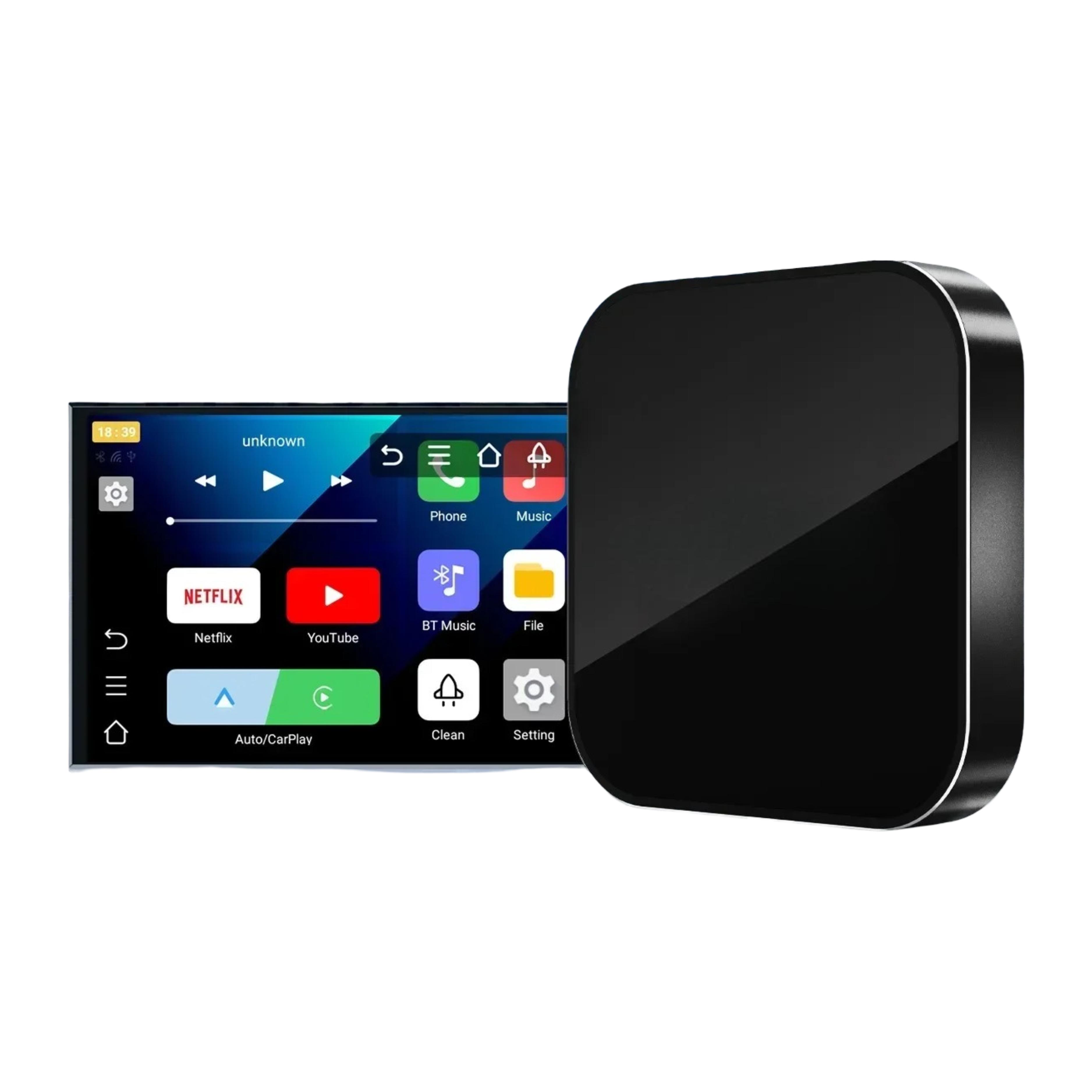 Características Destacadas Compatible Con Apple CarPlay Y Android Auto (Versiones Cableadas) Acceso A Netflix, YouTube, Disney+, Spotify Y Más Google Play Store Para Descargar E Instalar Apps Instalación Plug And Play Sin Modificaciones Procesador De Alto Rendimiento Con Gran Capacidad De Almacenamiento Interfaz Táctil Intuitiva Y De Fácil Uso Actualizaciones OTA Para Mantener El Sistema Al Día Transforma Tu Vehículo En Un Centro Multimedia Inteligente No te conformes con el sistema de entretenimiento básico de tu coche. Con la CarPlay Smart Box disfruta de una experiencia completa, moderna y personalizable para todos los pasajeros. Lleva la conectividad y el entretenimiento de tu vehículo al siguiente nivel con un solo dispositivo!