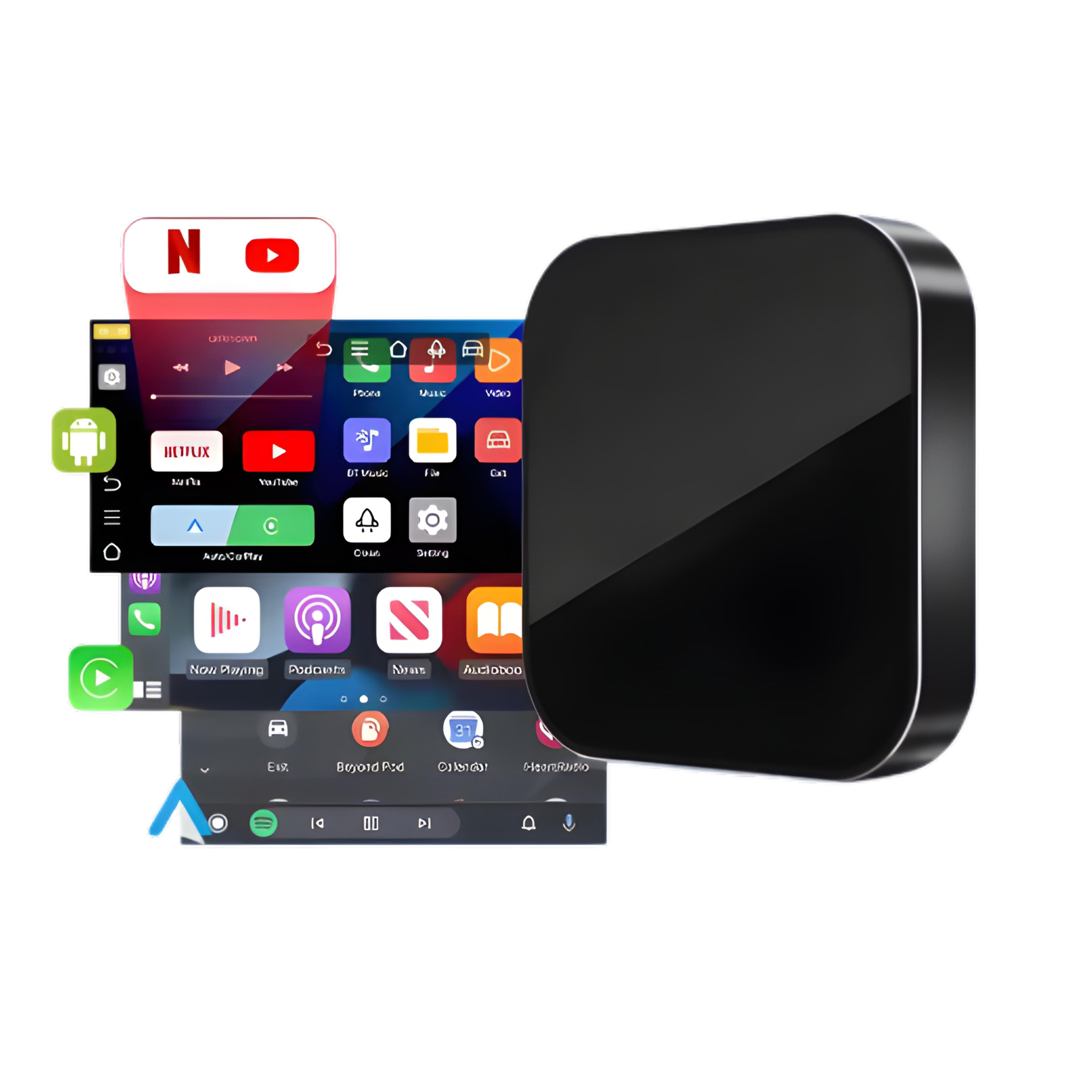 CarPlay Smart Box Reproductor Multimedia Para Coche Con Netflix, YouTube Y Google Store – Convierte Tu Pantalla En Un Centro De Entretenimiento Inteligente. Disfruta De Un Entretenimiento Sin Límites En Tu Coche Convierte tu sistema CarPlay en una auténtica Smart TV para el coche con la CarPlay Smart Box. Compatible con Apple CarPlay y Android Auto, este reproductor multimedia te permite acceder a Netflix, YouTube, Google Play Store y muchas más apps directamente desde la pantalla de tu vehículo. Ideal para viajes largos, entretenimiento familiar o simplemente para llevar tu experiencia al volante al siguiente nivel.