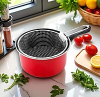 Marca: Gerimport Diámetro: 22 cm Material: Aluminio Color: Rojo con interior antiadherente negro Incluye: Cestillo metálico extraíble para freír Apto para: Placa de cerámica Encimera de gas Vitrocerámica de inducción Características destacadas: ✔ Diseño práctico y compacto, ideal para freír de forma segura y limpia ✔ Mango ergonómico con revestimiento antideslizante para un mejor agarre ✔ Apto para lavavajillas, fácil de limpiar ✔ Calentamiento rápido y uniforme gracias a su cuerpo de aluminio Perfecto para preparar frituras con facilidad en cualquier tipo de cocina. Un utensilio imprescindible para tu día a día.