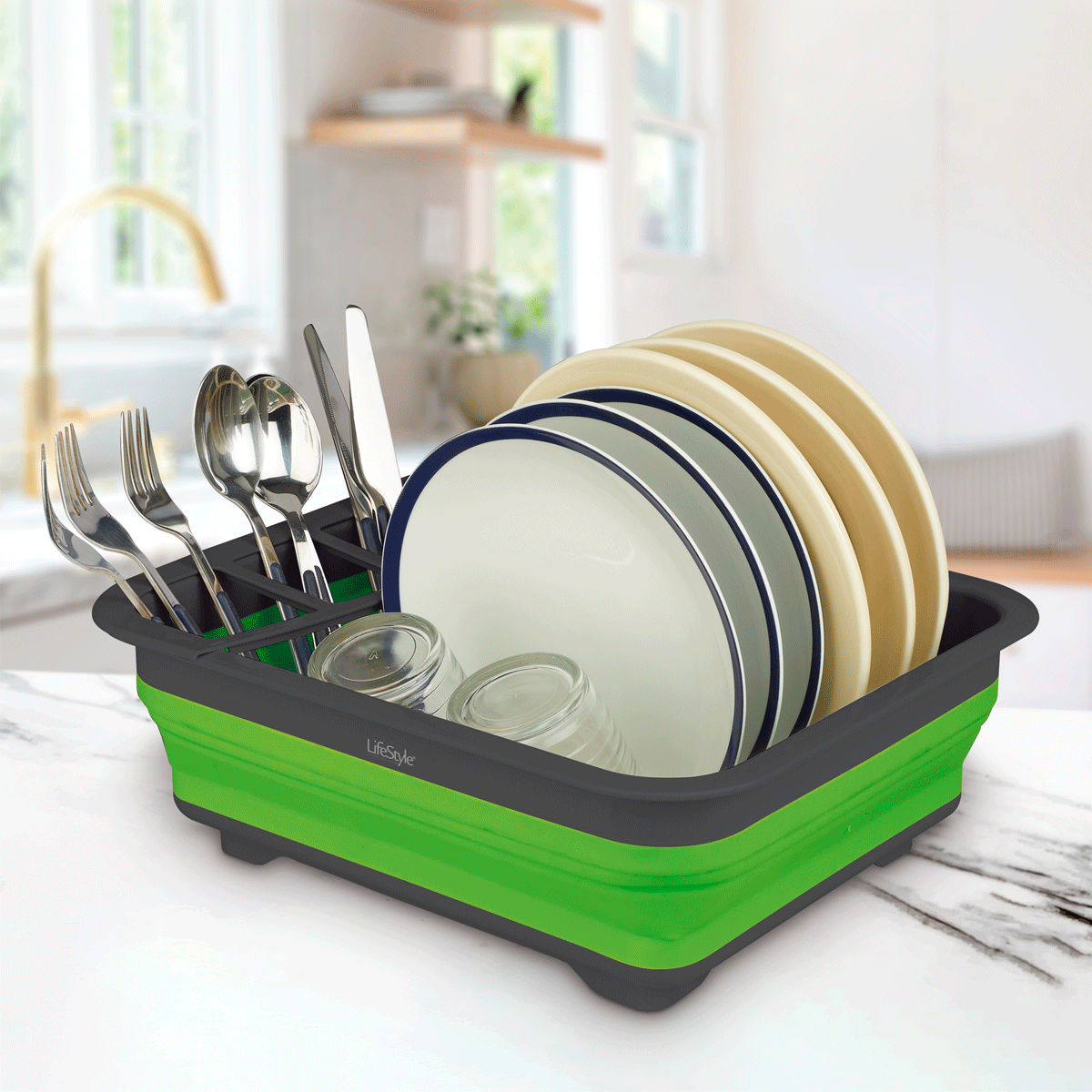 Escurridor De Vajilla Plegable De Silicona | ALLPERCOM – Práctico, Compacto Y Resistente Organiza Tu Cocina Con Estilo Y Funcionalidad Con El Escurridor De Vajilla Plegable De Silicona De ALLPERCOM, Diseñado Para Ahorrar Espacio Y Aportar Comodidad En Tu Rutina Diaria. Fabricado Con Materiales De Alta Calidad, Este Escurridor Es La Solución Ideal Para Secar Platos, Vasos, Cubiertos Y Utensilios De Manera Rápida Y Eficiente, Tanto En Casa Como Durante Tus Escapadas De Camping. Características Principales Diseño Plegable Y Compacto Se Pliega Fácilmente Cuando No Está En Uso, Ahorrando Espacio En La Encimera, El Fregadero O El Armario. Perfecto Para Cocinas Pequeñas, Viajes, Autocaravanas O Campamentos. Material De Silicona De Alta Calidad Fabricado Con Silicona Resistente, Libre De BPA Y Apta Para Uso Alimentario. Duradero, Flexible Y Fácil De Limpiar, Incluso En El Lavavajillas. Gran Capacidad De Almacenamiento Cuenta Con Múltiples Compartimentos Para Platos, Vasos, Tazas Y Un Separador Especial Para Cubiertos. Seca Más Vajilla En Menos Espacio. Base Con Drenaje Rápido Su Fondo Incluye Orificios De Drenaje Que Permiten Que El Agua Se Escurra De Forma Eficiente, Evitando Acumulaciones Y Facilitando El Secado Natural. Estilo Moderno Y Funcional Su Color Gris Con Toques Blancos Combina Perfectamente Con Todo Tipo De Cocinas, Desde Las Más Modernas Hasta Las Más Tradicionales.