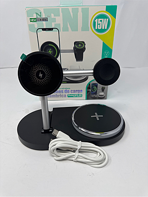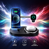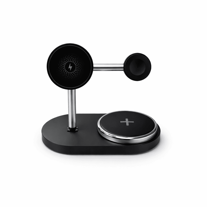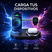 El Cargador Magnético 3 en 1 de 15W es la solución ideal para cargar todos tus dispositivos de forma ordenada, rápida y segura. Diseñado para cargar simultáneamente smartphone, smartwatch y auriculares inalámbricos, combina funcionalidad, diseño moderno y tecnología de carga eficiente.