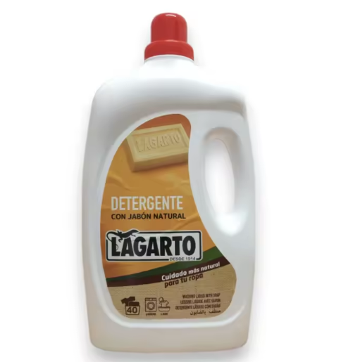 El Detergente Lagarto con Jabón Natural está formulado para ofrecer una limpieza profunda y un cuidado delicado de las prendas. Gracias a su base de jabón natural, es ideal para pieles sensibles y ropa de uso diario, dejando un aroma fresco y agradable. Su fórmula concentrada permite realizar hasta 40 lavados, eliminando eficazmente la suciedad incluso en ciclos cortos y a bajas temperaturas. Presentado en un práctico envase de 2960 ml con dosificador, este detergente es una excelente opción para quienes buscan una limpieza eficaz sin renunciar al cuidado más natural para su ropa.