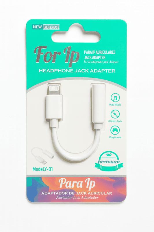 Adaptador Jack Modelo Y01 en color blanco, diseñado para conectar auriculares de 3.5mm a dispositivos Apple con puerto Lightning. Compacto, ligero y de alta calidad.