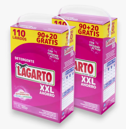 Detergente en Polvo Lagarto XXL – 110 Lavados (90 + 20 Gratis) | Ahorro Familiar con Oxígeno Activo