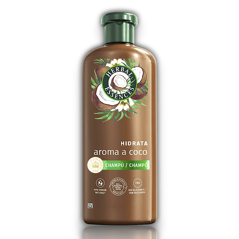Herbal Essences Champú Aroma a Coco 350 ml – Hidratación Profunda, Fórmula Vegana y Sin Siliconas Sumérgete En Un Paraíso Tropical Con Nuestro Champú Aroma a Coco. Esta fórmula vegana y libre de siliconas está enriquecida con extracto de coco de origen botánico, certificado por los expertos del Real Jardín Botánico de Kew, que nutre e hidrata intensamente el cabello seco desde la raíz hasta las puntas Marvimundo Herbal Essences . Beneficios Clave: Hidratación Intensa Para Cabello Muy Seco: Nutre profundamente dejándolo suave, sedoso y fácil de manejar Clarel Marvimundo . Aroma Tropical Relajante: Disfruta de un estimulante aroma a coco que transporta tus sentidos. Ideal para mejorar tu estado de ánimo durante la ducha Marvimundo . Limpieza Profunda, Sin Sensación Pesada: Su fórmula sin siliconas genera una espuma rica y ligera que limpia con suavidad sin apelmazar Marvimundo . Compromiso Sostenible: Contiene un 96 % de ingredientes de origen natural, envase reciclable y está libre de pruebas en animales Marvimundo . Cómo Usarlo: Aplica sobre el cabello mojado, masajea hasta obtener espuma abundante y enjuaga completamente. Para mejores resultados, complementa con acondicionador de la misma línea. Dimensiones y Peso del Producto (Las medidas exactas no suelen estar disponibles públicamente. A continuación, te presento estimaciones fundamentadas en envases similares de 350 ml) Longitud: 6,0 cm Ancho: 6,0 cm Altura: 20,0 cm Peso: 0,40 kg (incluye el líquido y envase) (Estas medidas son aproximadas; se recomienda verificarlas con el fabricante o proveedor de Amazon para mayor precisión.) Tamaño Del Empaque Envase individual de plástico PET de 350 ml, con formato ergonómico para un fácil agarre y apertura segura. Diseñado para minimizar el desperdicio y facilitar el reciclaje.