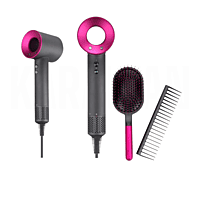 Kit de Peinado Profesional - Secador de Pelo Hair Dryer + Cepillo Plano + Peine Desenredante, Color Fucsia Descubre el Kit de Peinado ideal para tu rutina de cuidado del cabello. Este set completo incluye un Secador de Pelo Hair Dryer de alto rendimiento, un Cepillo Plano de diseño ergonómico y un Peine Desenredante de alta calidad, todo en un elegante color fucsia. Perfecto para conseguir un acabado profesional en la comodidad de tu hogar, este kit está diseñado para ofrecerte resultados rápidos, eficientes y suaves para todo tipo de cabello. Características: Secador de Pelo Hair Dryer: Con tecnología avanzada para un secado rápido y eficiente, este secador de alta potencia proporciona resultados suaves y sedosos sin dañar el cabello. Su diseño innovador en color gris y fucsia asegura un manejo cómodo y elegante. Cepillo Plano: Ideal para alisar y dar forma al cabello, este cepillo de alta calidad es perfecto para todo tipo de cabello, incluso el más rebelde. Su diseño antiestático ayuda a reducir el frizz y dejar el cabello brillante y suave. Peine Desenredante: Su estructura de dientes flexibles evita el daño y la rotura del cabello, permitiendo desenredar suavemente incluso los nudos más difíciles, dejándolo manejable y listo para cualquier estilo. Especificaciones: Secador de Pelo Hair Dryer: Potencia: 2200W Temperatura ajustable Diseño ergonómico para un agarre cómodo Motor de alta duración y bajo ruido Filtro removible para fácil limpieza Cepillo Plano: Material: Plástico de alta resistencia Diseño ergonómico con cerdas suaves Peine Desenredante: Material: Plástico flexible Ideal para todo tipo de cabello Medidas: Secador de Pelo Hair Dryer: 25 cm (Largo) x 8 cm (Ancho) x 25 cm (Alto) Cepillo Plano: 25 cm (Largo) x 8 cm (Ancho) x 3 cm (Alto) Peine Desenredante: 23 cm (Largo) x 5 cm (Ancho) x 2 cm (Alto) Peso: Peso Total del Kit: 0.7 kg Tamaño del Empaque: 30 cm (Largo) x 15 cm (Ancho) x 10 cm (Alto)