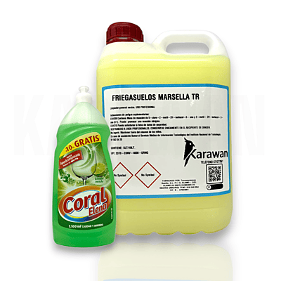 Detergente Liquido Fregasuelos Karawan de 5 Litros Marsella TR + Regalo Coral 1,100ml