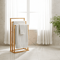 Toallero de Bambú Natural con 3 Barras - Organizador de Baño Ecológico, 42x24x81.5 cm Descubre la combinación perfecta entre diseño ecológico y funcionalidad con el Toallero de Bambú Natural con 3 Barras. Este elegante y práctico organizador es ideal para mantener tu baño ordenado, ofreciendo una forma eficiente de colgar toallas, paños y otros accesorios de baño. Hecho de bambú natural, este toallero no solo es resistente y duradero, sino que también contribuye a un entorno más sostenible, gracias a su material renovable. El diseño simple pero sofisticado de 3 barras de bambú proporciona un amplio espacio para colgar tus toallas de baño o de mano, sin ocupar demasiado espacio. Su estructura compacta y minimalista encajará perfectamente en cualquier baño, añadiendo un toque cálido y natural a tu hogar.