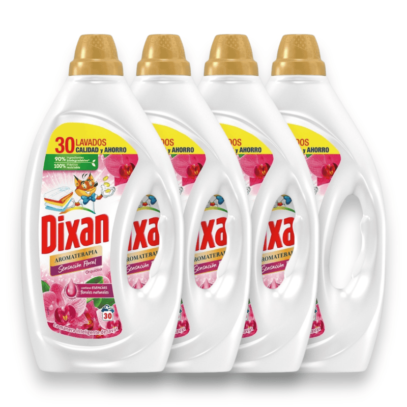 Detergente Líquido Dixan Sensación Floral – Pack 30 Lavados, Fragancia Duradera, Limpieza Eficaz y Cuidado de Colores Detergente Líquido Dixan Sensación Floral aporta una limpieza profunda y una fragancia floral envolvente que perdura lavado tras lavado. Formulado con tecnología 4+1, combina limpieza, cuidado de colores, eliminación de manchas, frescor duradero y ahorro en cada dosis. Ideal para lavar ropa blanca, de color y delicada en un solo ciclo, sin preocupar por transferencias de color. Su fórmula se disuelve fácilmente, incluso en agua fría, ofreciendo resultados impecables y cuidado de las fibras. Además, su envase es reciclable, en línea con un compromiso más responsable con el medio ambiente. Dimensiones: Largo 29,5 × Ancho 16,5 × Alto 6,5 cm; Peso: 1,6 kg. Perfecto para quienes buscan eficiencia, fragancia y eficacia en una solución práctica.