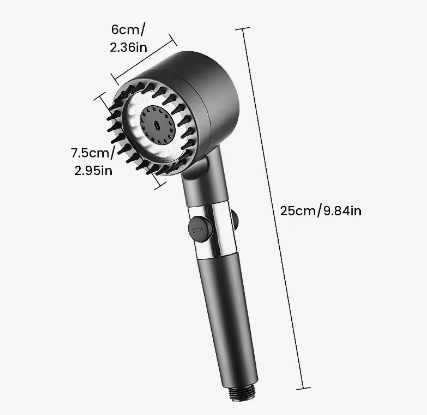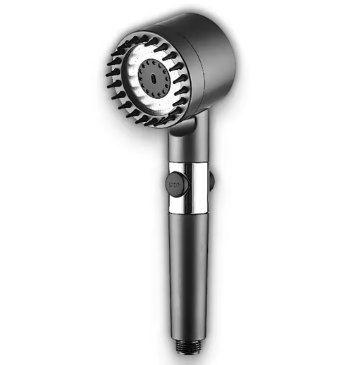 Alcachofa de ducha multifunción con 3 modos de chorro (lluvia, masaje y mixto) y botón STOP para detener el agua sin cerrar el grifo. Diseño ergonómico, fácil instalación y ahorro de agua con aumento de presión. Compatible con la mayoría de mangueras estándar.