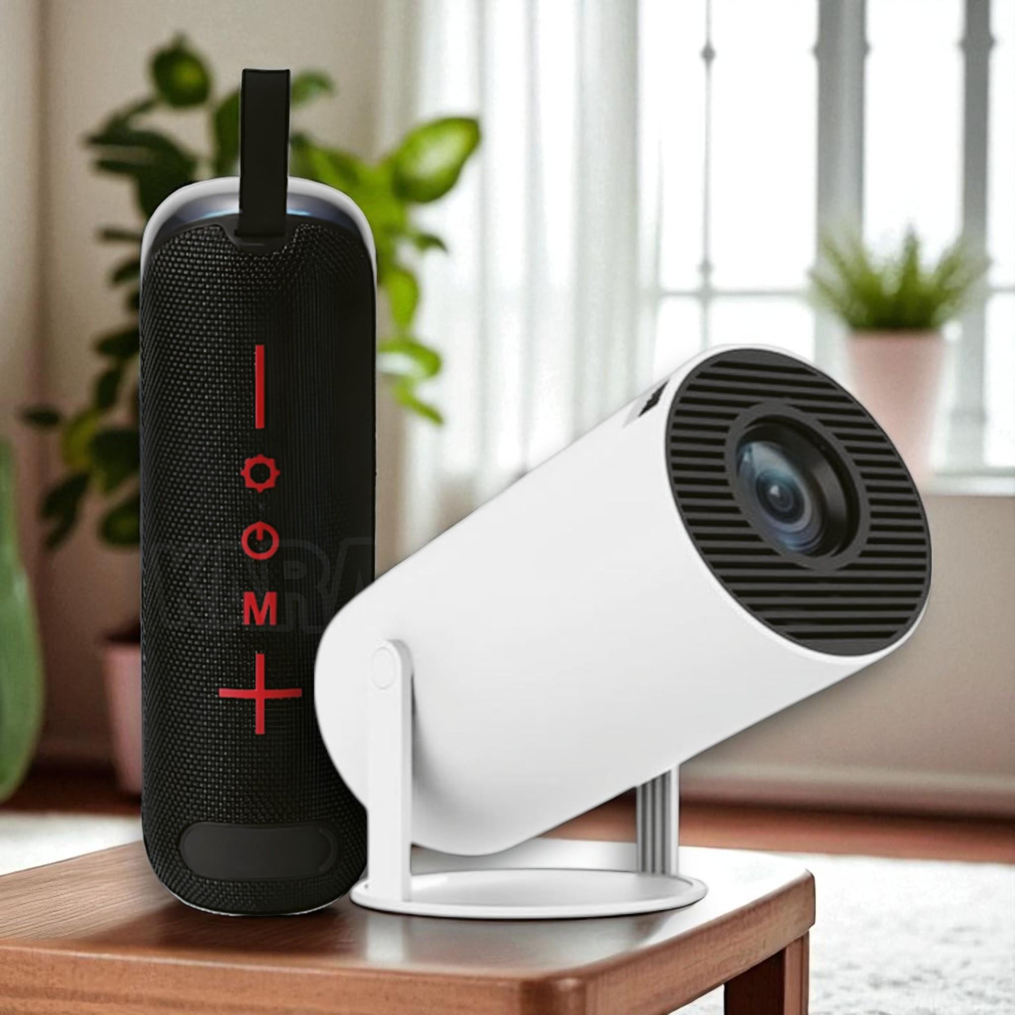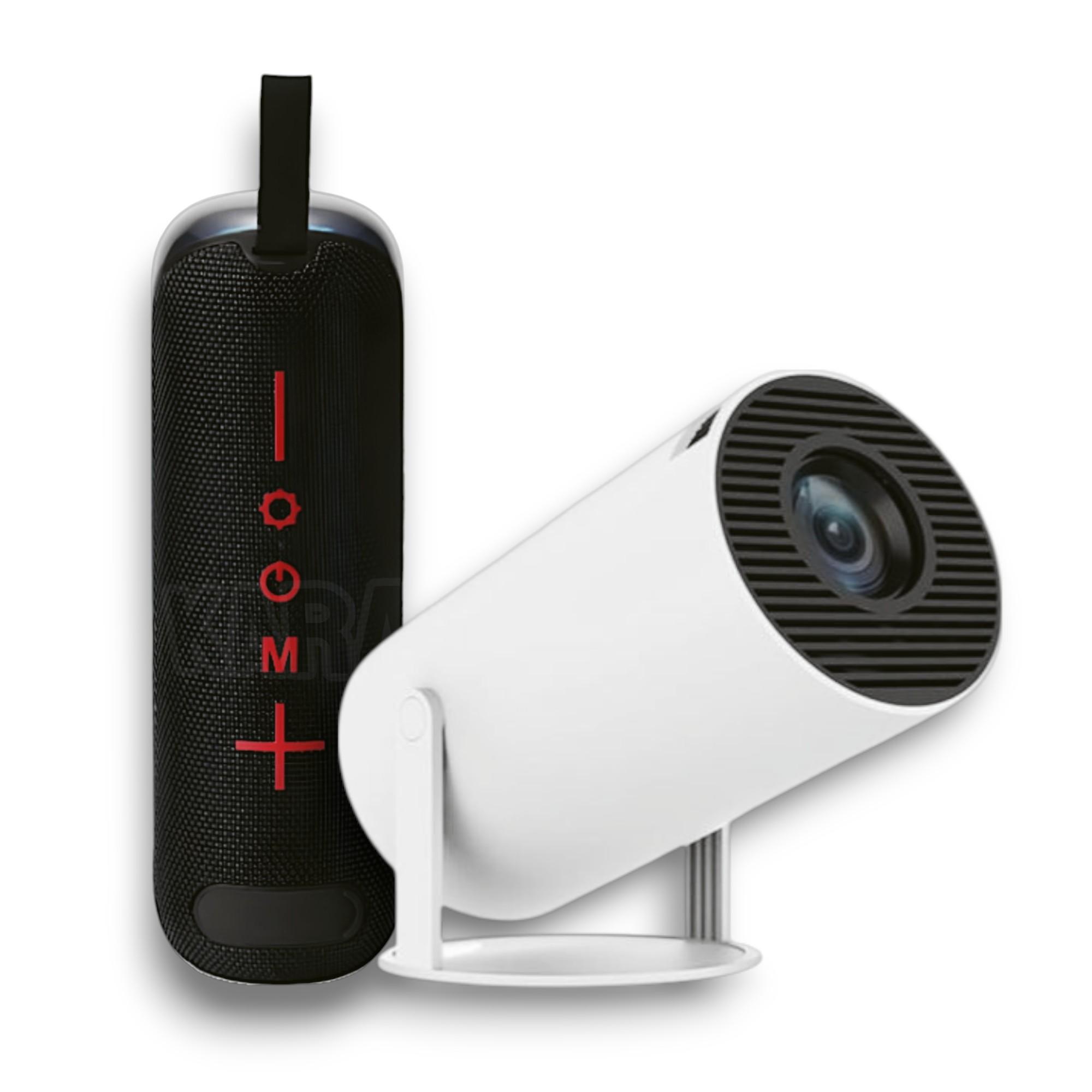 Set Proyector Portátil HY300 4K + Altavoz Bluetooth TG-384: Cine En Casa Donde Quieras Vive Una Experiencia Cinematográfica 4K En Cualquier Lugar Convierte cualquier espacio en tu sala de cine personal con el Set Proyector Portátil HY300 4K y el Altavoz Bluetooth TG-384. Este pack completo está diseñado para ofrecerte imágenes de alta definición y sonido envolvente de calidad superior, ideal para películas, series, videojuegos o presentaciones profesionales.