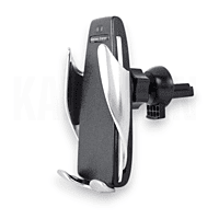 Combina un cargador inalámbrico y un soporte para teléfono en una sola unidad.Cuenta con sensores inteligentes (infrarrojos) que detectan la proximidad del teléfono, abriendo y cerrando automáticamente los agarres para sujetarlo.Es compatible con teléfonos que admiten carga inalámbrica Qi.Se instala en las rejillas de ventilación del coche.Incluye un cable USB tipo C para cargar el dispositivo.