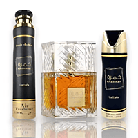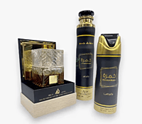 El pack Khamrah de Lattafa es una experiencia completa de fragancia masculina, con un aroma cálido, especiado y duradero. Este set incluye: Contenido del pack: Eau de Parfum 100ml: Aroma intenso con notas orientales y dulces Desodorante Spray 250ml: Protección y frescura con la misma fragancia Ambientador 300ml: Perfuma tus espacios con elegancia Características: Fragancia: Amaderada, especiada y ligeramente dulce Uso: Ideal para otoño e invierno Público: Masculino Presentación: Estuche de lujo, perfecto para regalo
