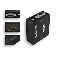 Actualiza tus conexiones fácilmente con el Convertidor VGA a HDMI con Entrada de Audio y Cable USB, el adaptador ideal para conectar equipos antiguos con salida VGA a televisores, proyectores y monitores modernos con entrada HDMI.