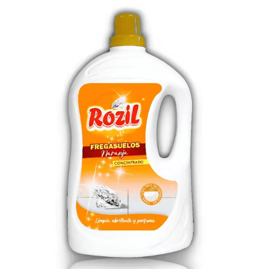 Rozil Fregasuelos Aroma Naranja Fregasuelos Rozil con agradable aroma a naranja, ideal para la limpieza y mantenimiento diario de todo tipo de suelos. Su fórmula elimina eficazmente la suciedad y deja un frescor duradero en el ambiente. Apto para uso doméstico y profesional, proporciona brillo y limpieza sin dejar residuos. Perfecto para baldosas, mármol, cerámica y suelos laminados.