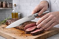 Material: Acero inoxidable de una sola pieza (cuerpo y mango) Color: Plateado metálico Diseño: Profesional, minimalista y ergonómico Uso recomendado: Verduras, carnes, pescados, alimentos blandos Filo: Liso y afilado de fábrica Mango: Integrado, antideslizante por diseño curvo