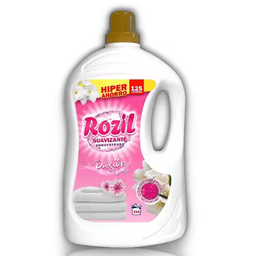 Suavizante concentrado Rozil con delicado aroma a rosa, formulado para aportar máxima suavidad y frescor duradero a todo tipo de prendas. Cuida las fibras, facilita el planchado y deja un perfume floral agradable y envolvente. Formato económico de 125 dosis, ideal para uso doméstico o profesional. Apto para ropa blanca y de color.
