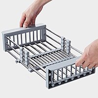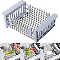 Escurreplato Extensible de Acero Inoxidable | Organizador Multiuso para Fregadero ● DISEÑO TELESCÓPICO TAMAÑO EXTENSIBLE: este escurridor de platos organiza cuidadosamente los platos después de haberlos lavado La canasta de desagüe telescópica del fregadero es flexible para adaptarse a la mayoría de los fregaderos la longitud de este escurridor de platos sobre el fregadero se puede retraer de 330 a 440 mm. ● DURADERO Y AHORRO DE ESPACIO: ideal para secar platos con encimera y espacio de almacenamiento limitados Compacto y robusto Ajuste de tamaño para la mayoría de los lavabos Rejillas para platos de acero inoxidable con asas antideslizantes y pie con diseño de arco para proteger el fregadero y el mostrador Espacio de expansión la bandeja de secado ajustable casi duplica el espacio de secado Ideal para tus cocinas baños y trasteros ● MATERIAL PREMIUM: la canasta de drenaje telescópica de acero inoxidable está hecha de acero inoxidable 304 de grado alimenticio resistente y audaz elimina el óxido la corrosión los ácidos y los daños alcalinos para garantizar una durabilidad duradera La canasta de drenaje del tanque de agua universal telescópica es adecuada para todo tipo de fregaderos el borde de ABS no lastima sus manos la selección de materiales la mano de obra fina no lastima el fregadero ● CONVENIENTE y PRÁCTICO: rejilla para secar platos ahuecada diseño general de ventilación y drenaje transpirable y resistente al moho.Haga que los platos se sequen más rápido y utilícelos de manera más saludable Cesta de drenaje telescópica de acero inoxidable que le permite escurrir bien de manera fácil y rápida sus frutas verduras y platos y tazas. ● USO VERSÁTIL: esta canasta de escurridor ajustable permite secar o enjuagar rápidamente verduras y frutas con una rejilla grande fácil de almacenar varios platos y platos el escurridor de platos retráctil para el fregadero tiene suficiente espacio que le permite lavar mantener los utensilios ordenados y bien organizados.