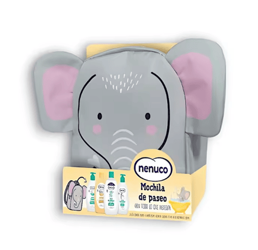 Mochila de Paseo Elefante - Nenuco (Famosa) ¡La hora del paseo será aún más divertida con esta adorable Mochila de Paseo Elefante de Nenuco! Diseñada en forma de simpático elefante con orejas suaves y colores suaves, esta mochila infantil no solo enamora por su diseño, sino que además incluye todo lo necesario para cuidar a tu bebé Nenuco o llevar lo esencial en las salidas. Incluye: 1 Gel de baño Nenuco 1 Champú suave Nenuco 1 Leche hidratante corporal Nenuco 1 Colonia Nenuco clásica Características: Mochila ligera y cómoda para los más pequeños Ideal para paseos y viajes Diseño atractivo con forma de elefante gris y orejas rosadas Productos con el inconfundible aroma Nenuco, testados dermatológicamente Marca: Famosa / Nenuco Perfecta como regalo o complemento para muñecos Nenuco. ¡Un imprescindible para padres y niños que adoran la fragancia y el cuidado Nenuco!