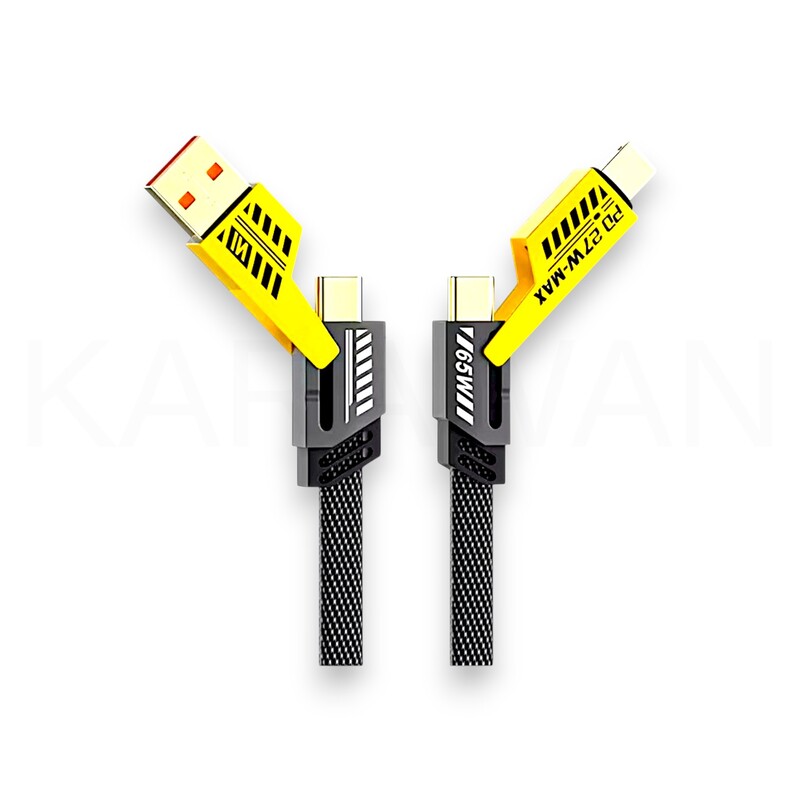 Cable USB KARAWAN CABLEFLASH – Conectividad total con diseño resistente y alta velocidad El KARAWAN CABLEFLASH es un cable multifunción diseñado para ofrecer máxima compatibilidad y durabilidad. Con múltiples conexiones integradas —USB-C, USB, un segundo USB-C y Lightning— permite cargar y transferir datos entre prácticamente cualquier dispositivo: smartphones, tablets, laptops, consolas portátiles y accesorios tecnológicos. Fabricado con materiales reforzados en un diseño negro y amarillo, este cable destaca por su resistencia al desgaste, su flexibilidad y sus conectores de alta calidad, que aseguran un rendimiento estable y seguro en todo momento.