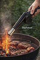 Soplador de Fuego para Barbacoas – Tamaño Compacto 25 × 7 × 4 cm El soplador de fuego para barbacoas es un utensilio práctico y seguro diseñado para avivar el fuego y controlar la llama de tu parrilla de manera eficiente. Este tipo de producto permite encender carbón, leña o brasas más rápido, logrando la temperatura ideal para cocinar tus alimentos sin esfuerzo adicional. El modelo compacto de 25 × 7 × 4 cm está pensado para un uso cómodo y portátil, siendo fácil de manipular y almacenar cuando no se utiliza.