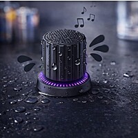Altavoz Bluetooth Portátil Con Luz RGB, Diseño Tipo Perilla, Resistente Al Agua, Color Negro El Altavoz Bluetooth Portátil Con Luz RGB Integrada combina diseño compacto y funcionalidad para el uso diario. Su formato tipo perilla le da un estilo moderno y fácil de manipular, ideal para colocar en escritorios, mesas de noche, cocina o baño. Cuenta con conectividad Bluetooth para reproducir música de forma inalámbrica desde teléfonos móviles y otros dispositivos compatibles. La base incorpora iluminación RGB que aporta un efecto visual decorativo mientras está en funcionamiento. Su diseño resistente al agua lo hace adecuado para entornos donde puede haber salpicaduras, como cocina o baño.