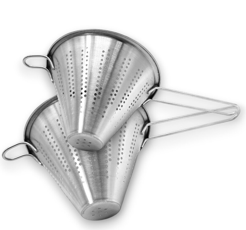 Pack de 2 Unidades Colador Chino de Acero Inoxidable – 16 cm y 22 cm | Colador de Cocina Profesional Optimiza tu experiencia en la cocina con este pack de 2 coladores chinos de acero inoxidable, diseñados para ofrecer máxima resistencia, precisión y durabilidad. Este set incluye coladores de 16 cm y 22 cm de diámetro, ideales para adaptarse a diferentes preparaciones, desde salsas finas hasta caldos, cremas y frituras. Fabricados en acero inoxidable de alta calidad, estos coladores de cocina garantizan resistencia a la corrosión, fácil limpieza y larga vida útil. Su diseño cónico tradicional permite un filtrado más eficiente, logrando texturas suaves y profesionales en cada receta. ✅ Características principales: Material: Acero inoxidable resistente y duradero Medidas: 16 cm y 22 cm de diámetro Diseño cónico tipo colador chino profesional Malla fina de alta precisión para colar salsas, caldos, cremas y jugos Mango ergonómico para un manejo seguro y cómodo Apto para uso doméstico y profesional Ideal para: Colar sopas, caldos y consomés Filtrar salsas y cremas Escurrir pasta, arroz y verduras Preparaciones de repostería y cocina gourmet Este colador chino de acero inoxidable es una herramienta imprescindible en cualquier cocina. Perfecto para chefs profesionales y amantes de la cocina que buscan utensilios de cocina de calidad profesional, resistentes y funcionales. Mejora tus preparaciones con este set de coladores de cocina resistentes, práctico y versátil. ¡Un accesorio indispensable para lograr resultados perfectos en cada receta!
